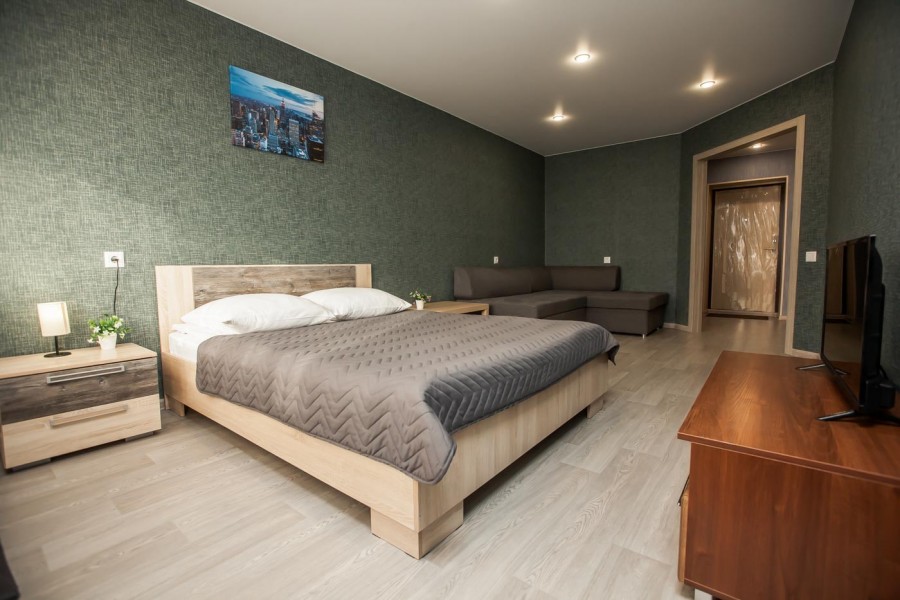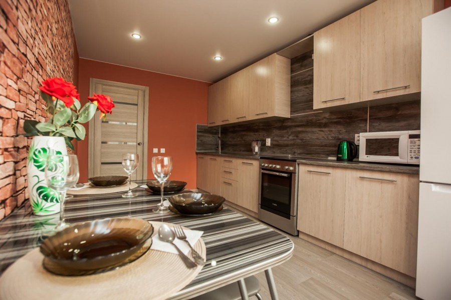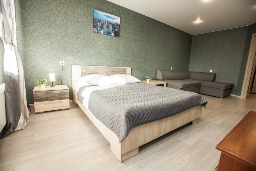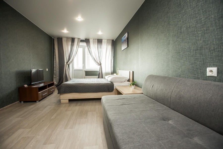 Однокомнатная квартира с евро-ремонтом с 4 спальными местами. Для комфортного длительного проживания оснащена стиральной машиной и всей необходимой мелкой бытовой техникой. В квартире имеется 2-спальная кровать и 2 спальный диван. Идеальное расположение относительно транспортных развязок, магазинов, отделений банков и тд.